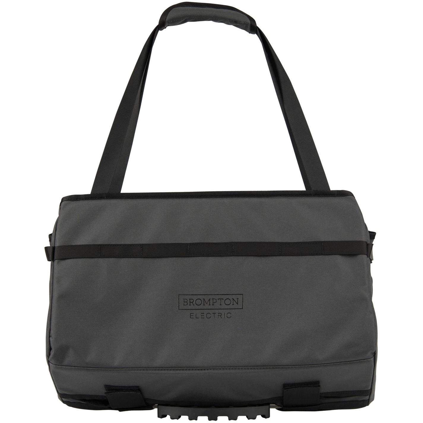 We’ve adapted our classic folding Basket Bag to work with the Brompton Electric battery and Front Carrier Block system Whilst the dimensions differ slightly, we’ve ensured there’s still a large load capacity for all your gear and the internal aluminium brace and side cinches allow you to quickly adjust the size of the bag to your needs Made from premium durable materials, with additional features including an internal zippered pocket and external webbing loops that allow you to attach additional items The E basket is a versatile piece of kit for all your everyday adventures Compatible with all Brompton Electric models.