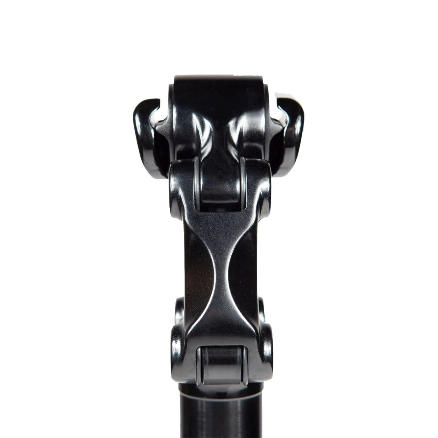 > Travel: 50mm (1.97) > Seatclamp: Single bolt fastening and angle adjustment design > Elastomer: 2-piece design, tool-free inner elastomer change for various rider weight > Pivots: Threaded, serviceable, hard anodized aluminium axles flanged PTFE bushings > Rider Weight Limit: 150kg/330lb > Sizes: 27.2mm, 30.9mm, 31.6mm (additional diameters available with shim) > Length: Minimum 100mm, Maximum 274mm > Weight: 580g (31.6mm)