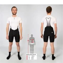 - New bib construction combining wide elastic straps and supportive high wicking rear panel