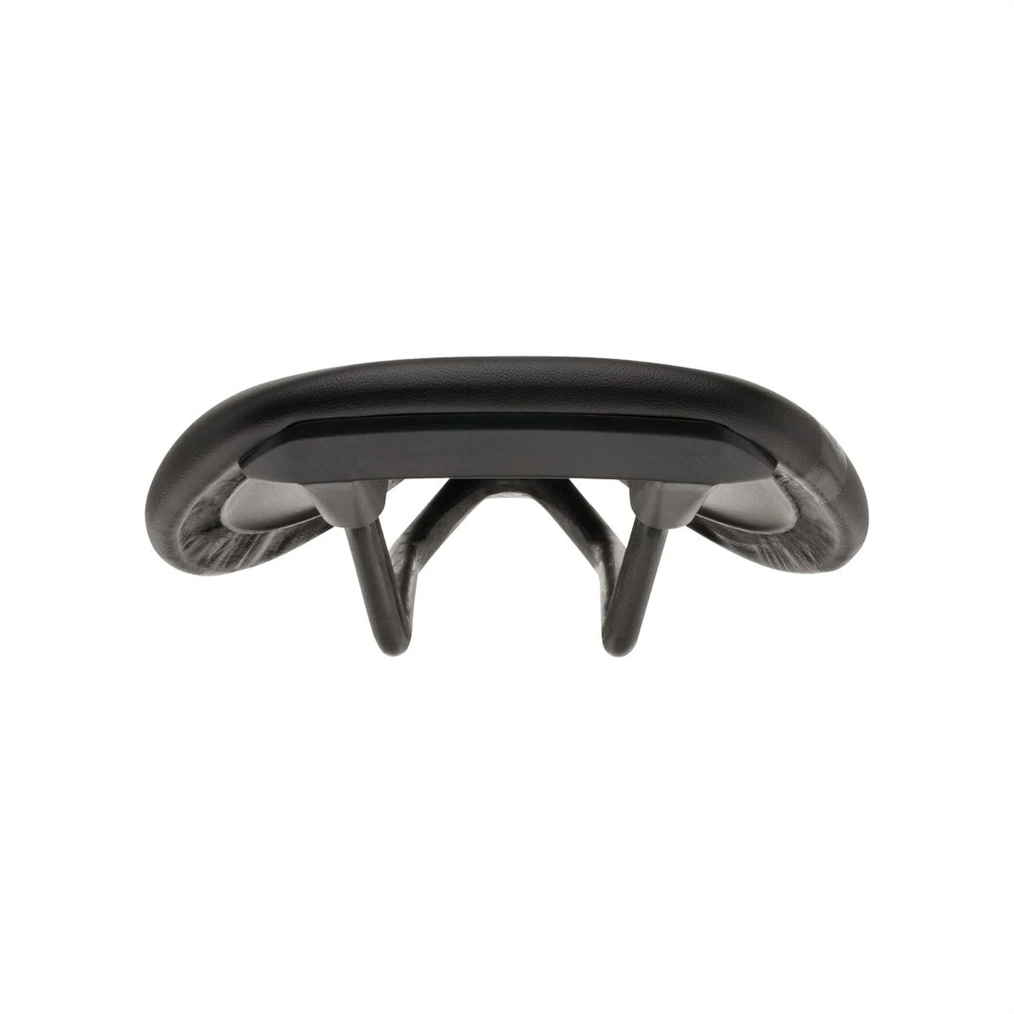 In the average female, the pubic symphysis (front cartilage connecting the two halves of the pelvis) is positioned lower than in a male pelvis, and the angle of the pubic bones towards each other is wider. Furthermore, mobility is higher in women, so when in the saddle, their pelvis often rocks further forwards. This can create high pressure in the genital area. The centre relief, which is positioned far at the front, as well as the wider saddle flanks help distribute the pressure of the sitting area.