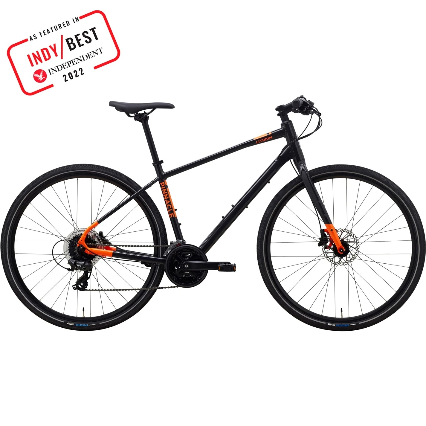 Our best-selling do it all hybrid. The Pinnacle Lithium is the most versatile bike in our line-up. Part city and touring bike with part flat bar gravel or rigid mountain bike. Truly a go anywhere, do anything bike. Secure handling over the rough stuff and a confident attitude in traffic it’s a popular choice for loading up with panniers full of shopping or your worldly belongings and heading out on tour.