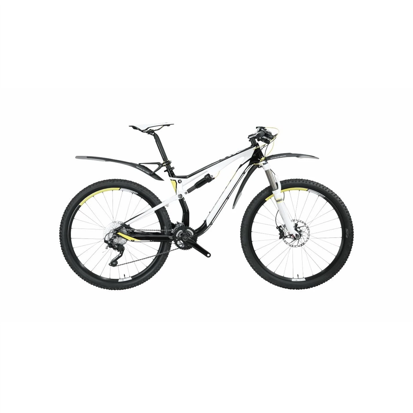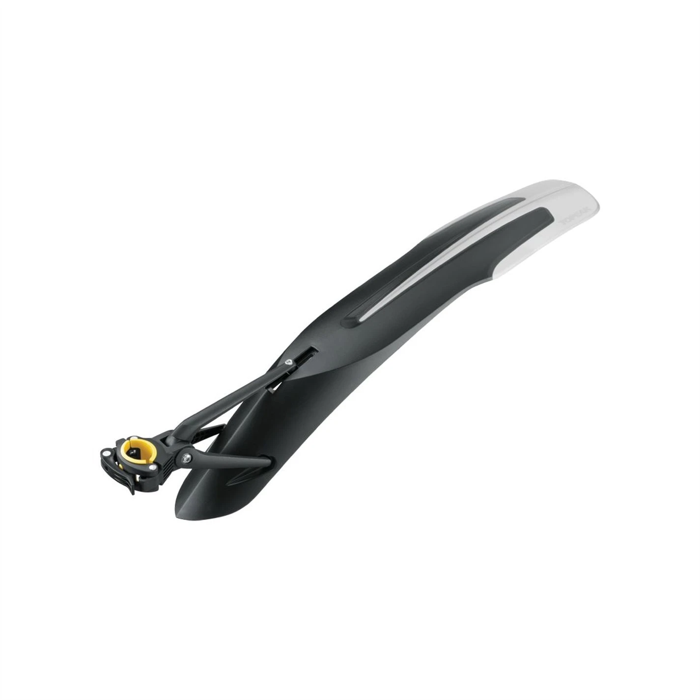 Introducing the Topeak Defender Set M1/XC11 – 29′. The M1 is compatible with all fork types including tapered steerers as the unique quick release attachment system integrates seamlessly. The main body of the mudguard is constructed from a stiff engineering grade of plastic and the support frame is made from a soft flexible materials at both trailing ends. This allows for a strong yet flexible base so if you were to fall off the bike the mudguard will be able to flex with the crash which dramatically decreases the chance of the mudguard cracking or braking. The rear mudguard, XC11, is constructed from the same strong, flexible and durable materials and also has the ability to adjust to the shape of your bike for maximum tyre coverage. With a simple design the mudguard looks good on all bikes.