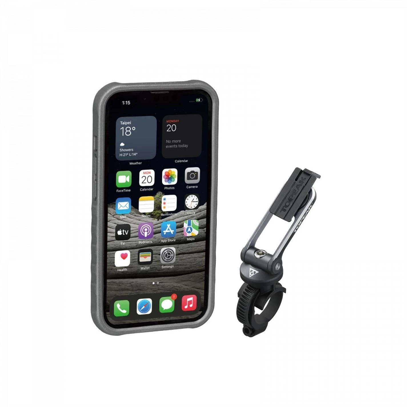 The RideCase for iPhone has a scratch-resistant, dual-density, non-slip, high-grade engineering polymer/rubber exoskeleton for shock and impact protection that holds your phone securely while on the go. Its full angle adjustment allows viewing in portrait or landscape modes and an Integrated flip stand for post-ride hands-free viewing. Compatible with Lightning cable charging.