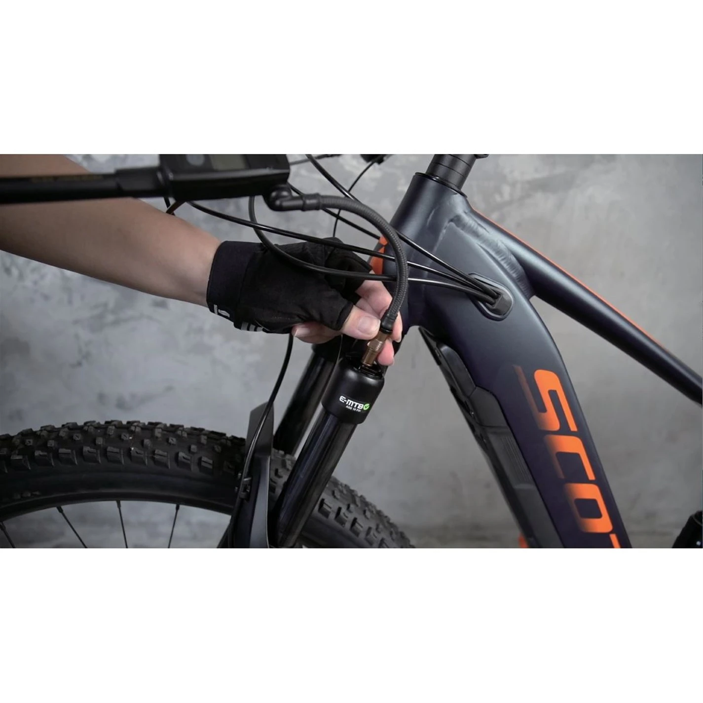 A compact shock pump with easy to read digital gauge delivering accurate pressure readings up to 300psi. The Pressure-Rite connector and air release button make dialling in your pressure quick and easy, and there is no pressure loss when removing the connector while the rotating hose takes stress off the valve stem when inflating.