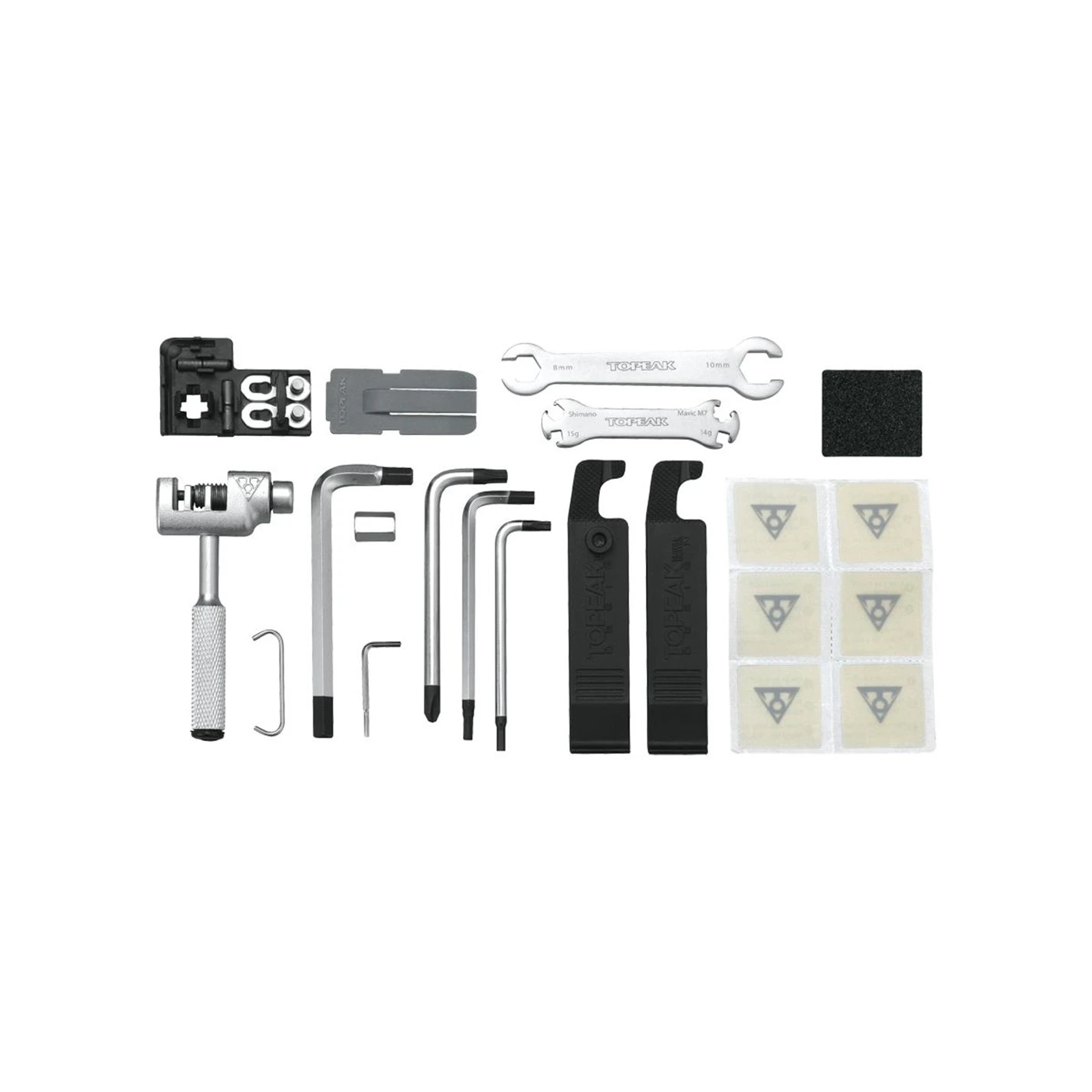 The Topeak Survival Gear Box is an update of the classic tool kit. The new Survival Tool Box features 22 pro quality hardened tools in a compact, custom moulded plastic case. 233g.
