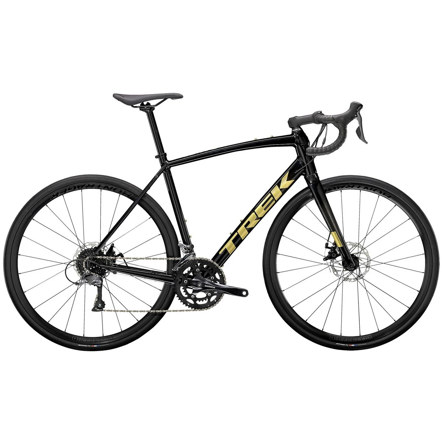 - Fork: Domane AL carbon, tapered alloy steerer, internal brake routing, mudguard mounts, flat-mount disc, 12×100 mm thru axle